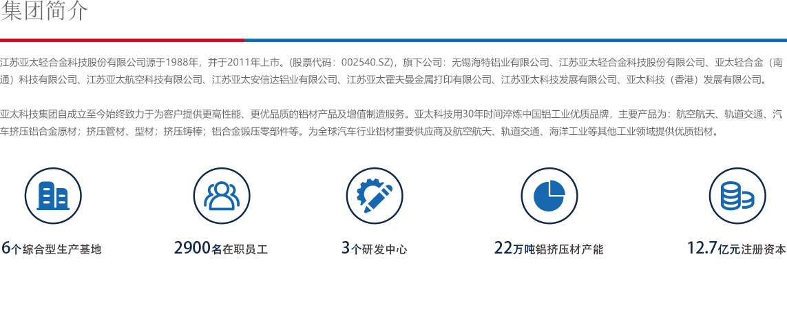 亞太科技始終致力于為客戶提供更高性能、更優(yōu)品質(zhì)的鋁材產(chǎn)品及增值制造服務(wù)。通過(guò)在材料、工藝、裝備、應(yīng)用方面不斷創(chuàng)新,在過(guò)程、品質(zhì)、交付方面持續(xù)改進(jìn),亞太科技用30年時(shí)間淬煉中國(guó)鋁工業(yè)優(yōu)質(zhì)品牌,成為全球汽車行業(yè)鋁材重要供應(yīng)商及航空航天、軌道交通、海洋工業(yè)等其他工業(yè)領(lǐng)域鋁材優(yōu)質(zhì)供應(yīng)商。